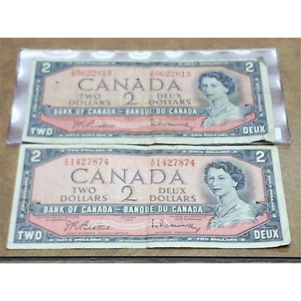 Two Canada 2 Dollar Bills 1954 Ottawa