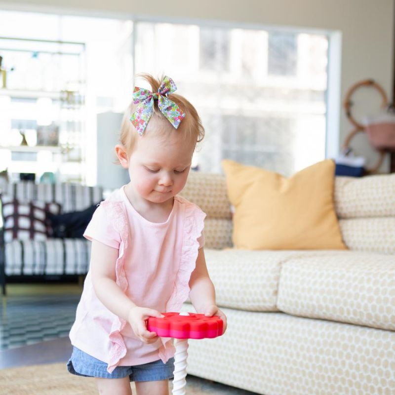 The SpinAgain from Fat Brain Toys is a fan favorite in our clinic - we have one in almost every one of our treatment rooms! This spinning stacking toy has six fun shaped and brightly colored disks that little ones love to watch spin all the way down the corkscrew pole. While watching the disks spin can be mesmerizing, this toy helps teach kids.