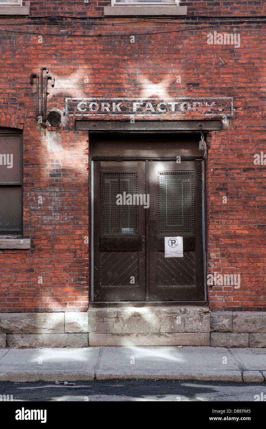 Entrance door to an old industrial building in Montreal, province of Quebec, Canada Stock Photo