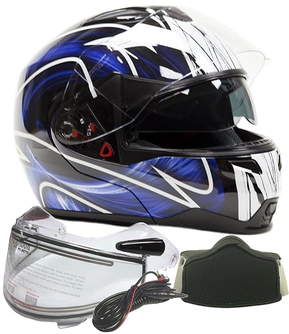 Black/White Dual Visor Adult Modular Flip up Snowmobile Helmet - TH158. $125. Modular Dual Visor Adult Snowmobile Helmet w/ Electric Heated Shield Pink. $145. Modular Dual Visor Adult Snowmobile Helmet Electric Heated Shield - Green. $145. Matte Black Dual Visor Modular Flip up Adult Snowmobile Helmet - TH158. $125.